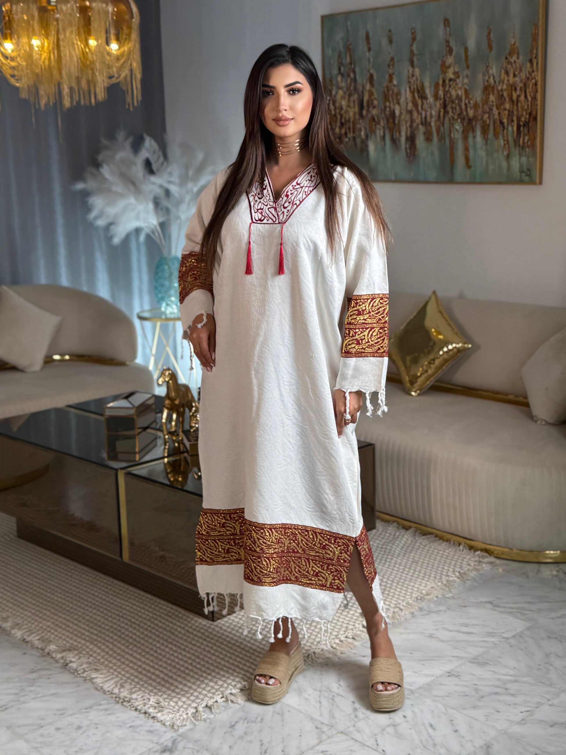 جبّة تونسية من قماش الحايك ، بيضاء مع تطريزات مختلفة الألوان تضيف لمسة أنيقة وراقية