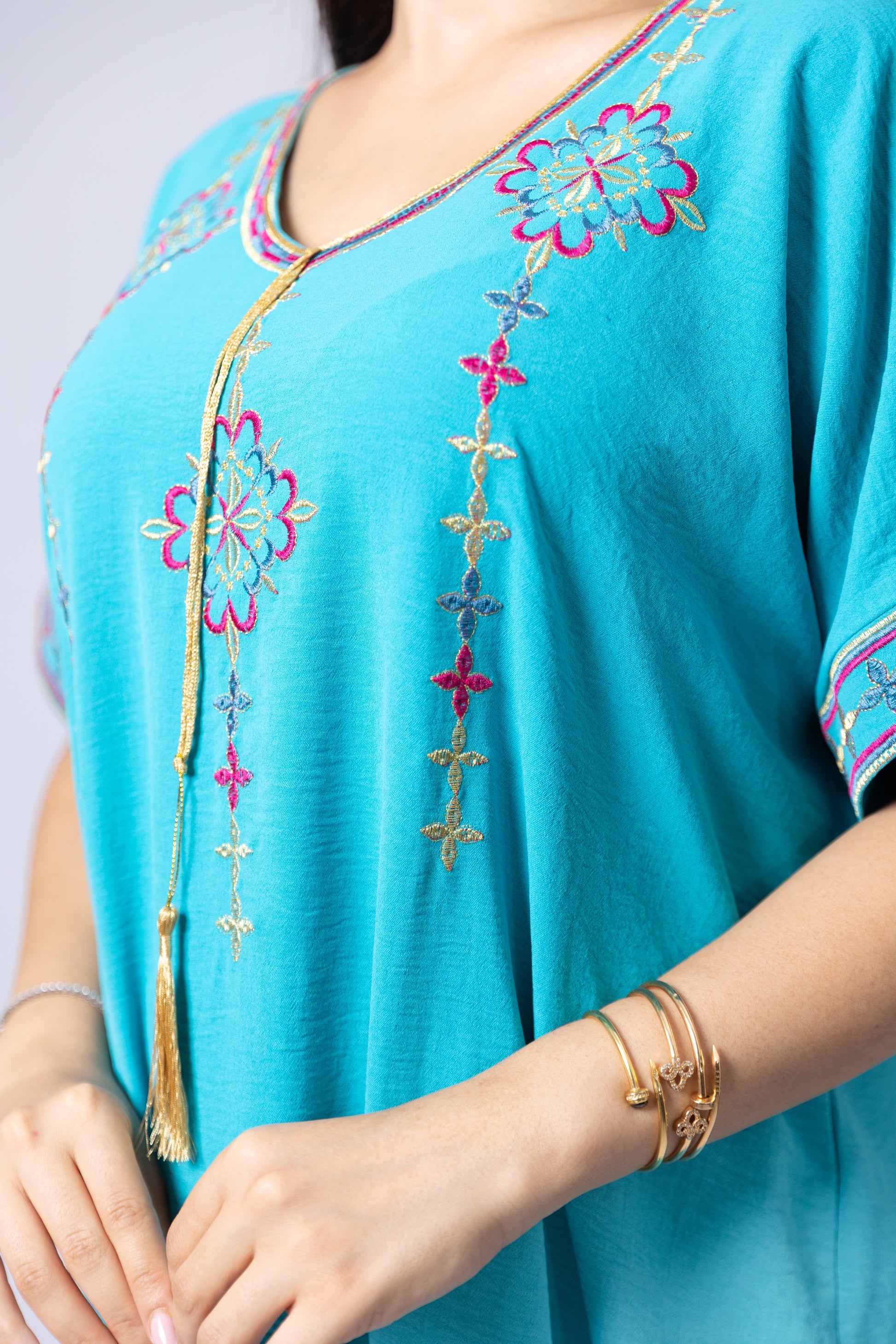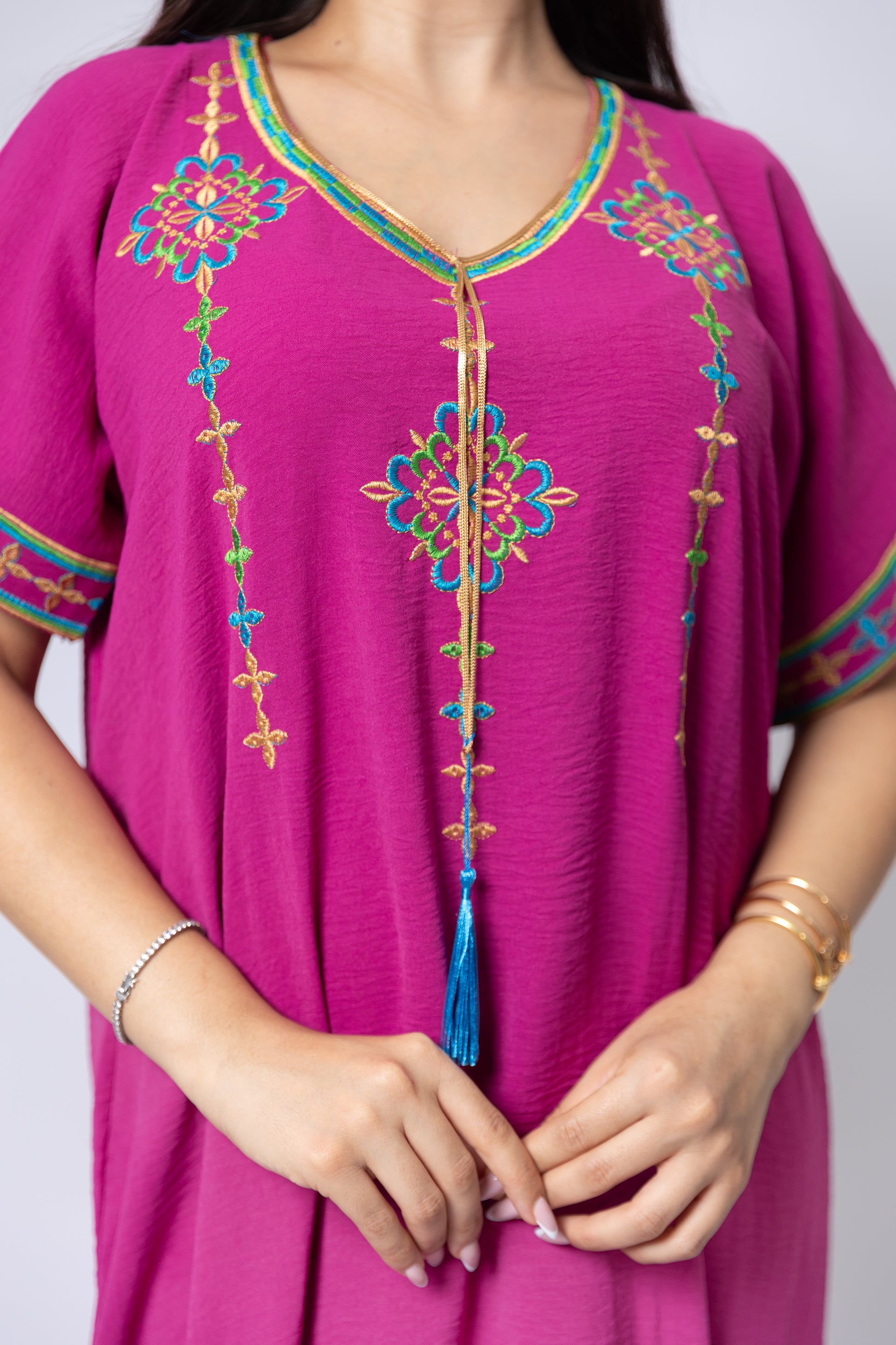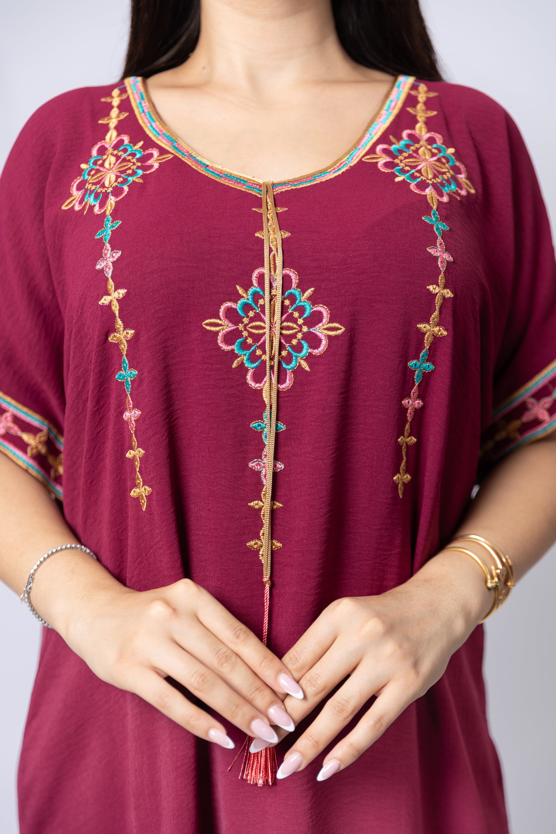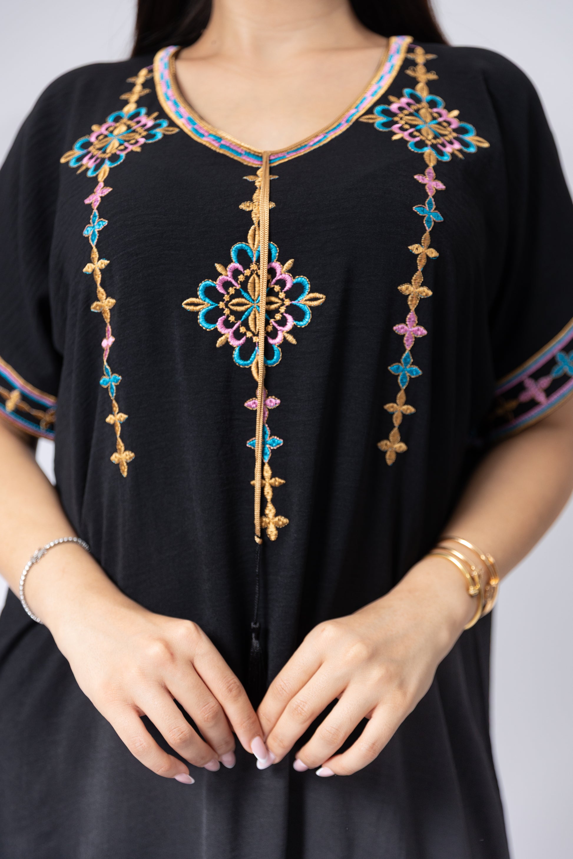 Confection soignée avec des broderies raffinées qui allient authenticité et modernité.